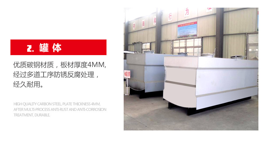 罐體 | 采用優質碳鋼材料,焊接式結構,內設縱,橫防蕩板,經高科技防腐處理。可選用不銹鋼材料。 | ||||